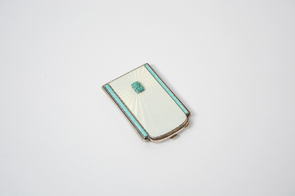 Portabiglietti da visita in argento con coperchio a smalti e decoro guillochè; punzoni Mappin & Webb (cm 5.4x8.5) (lievi difetti)