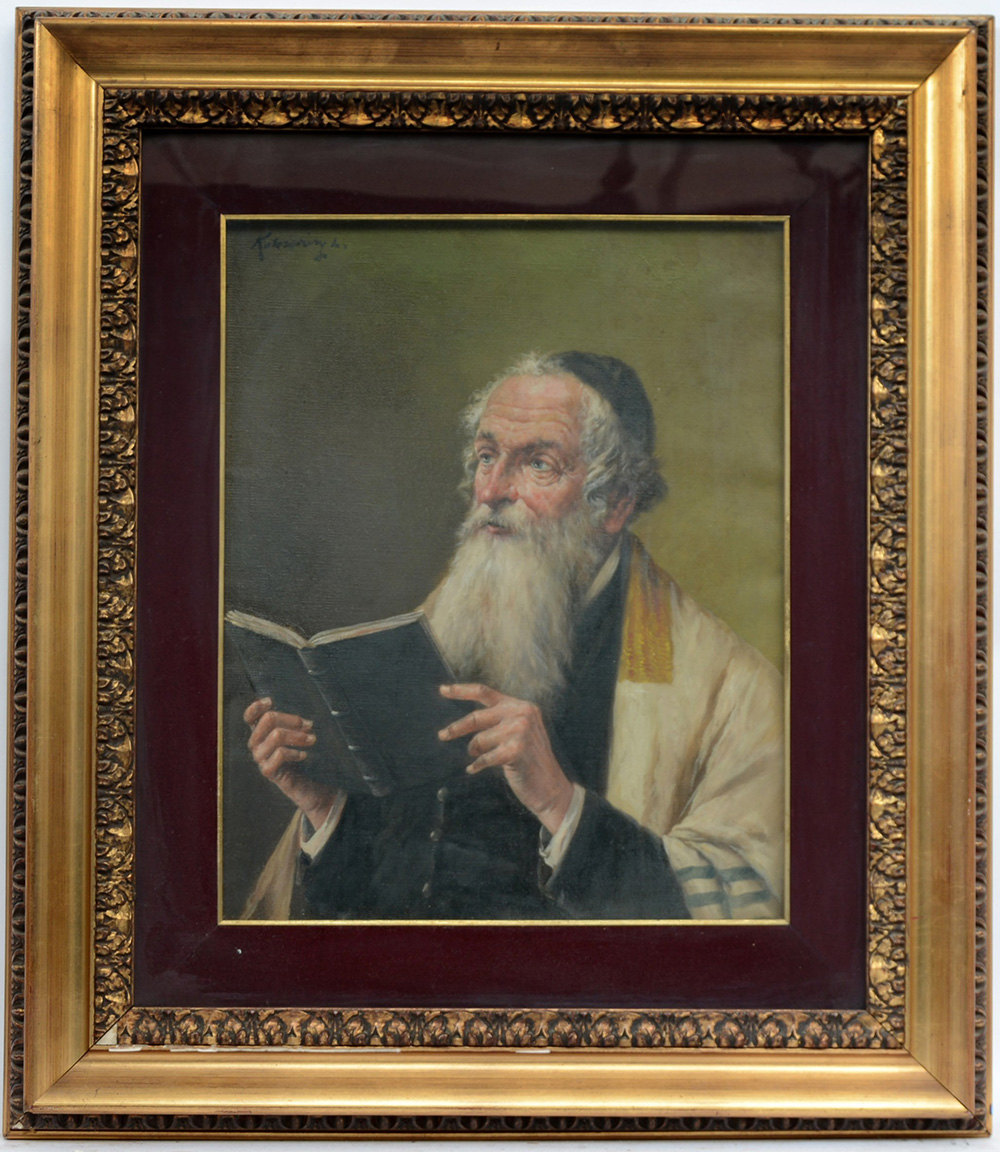 Lotto 1752 | Firma indecifrata "Ritratto di rabbino" olio su tela (cm 47,5x39) firmato in...