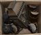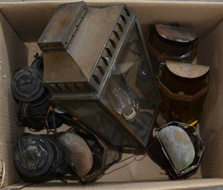 Cartone contenente lanterne e applique di epoche e materiali diversi (difetti)