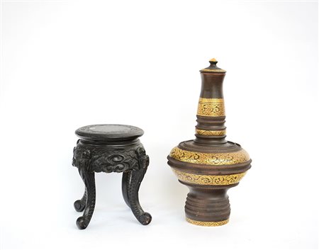 Lotto composto da un vaso in terracotta di manifattura indiana ed un porta vaso in legno di manifattura cinese (difetti)
