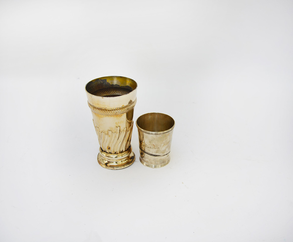 Lotto in argento composto da due bicchieri di cui uno Birmingham 1893 e l'altro Messico (gr tot. 400 ca) (difetti)