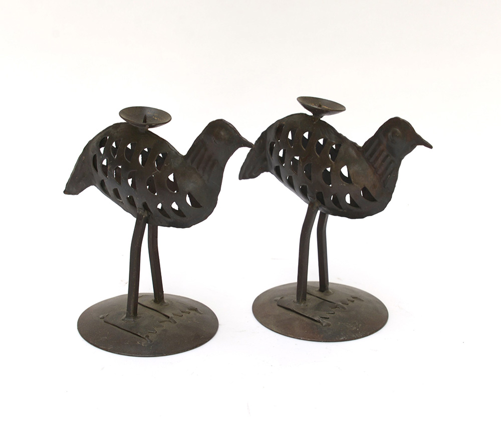 Coppia di candelieri in metallo a forma di volatili (h cm 19)(difetti)