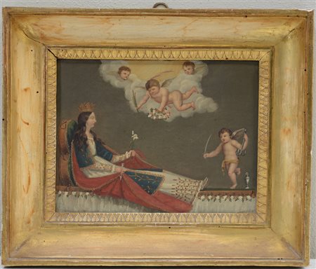 Ignoto del secolo XIX "Santa Impertarice" olio su tavola (cm 20x26,5)in cornice (difetti)