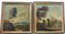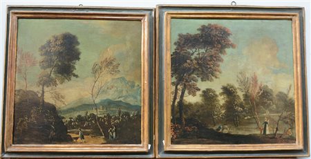 Ignoto "Paesaggi con figure" coppia di olii su tela (cm 65x65) In cornici antiche in legno laccato e dorato (difetti)
