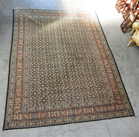 [Tappeti] Tappeto Tabriz, Persia, fine sec. XIX. Disegno Herati su campo color blu scuro (cm 345x249) (difetti)
