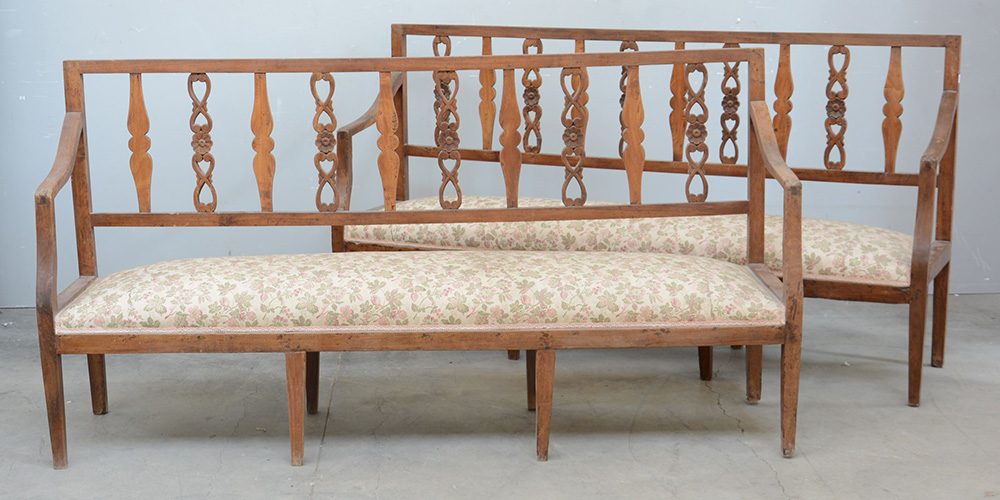 coppia di divanetti in legno difetti
