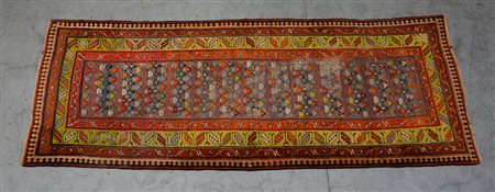 [Tappeti] Tappeto Gandjiè, Caucaso, sec. XX. Disegno a file geometriche a...