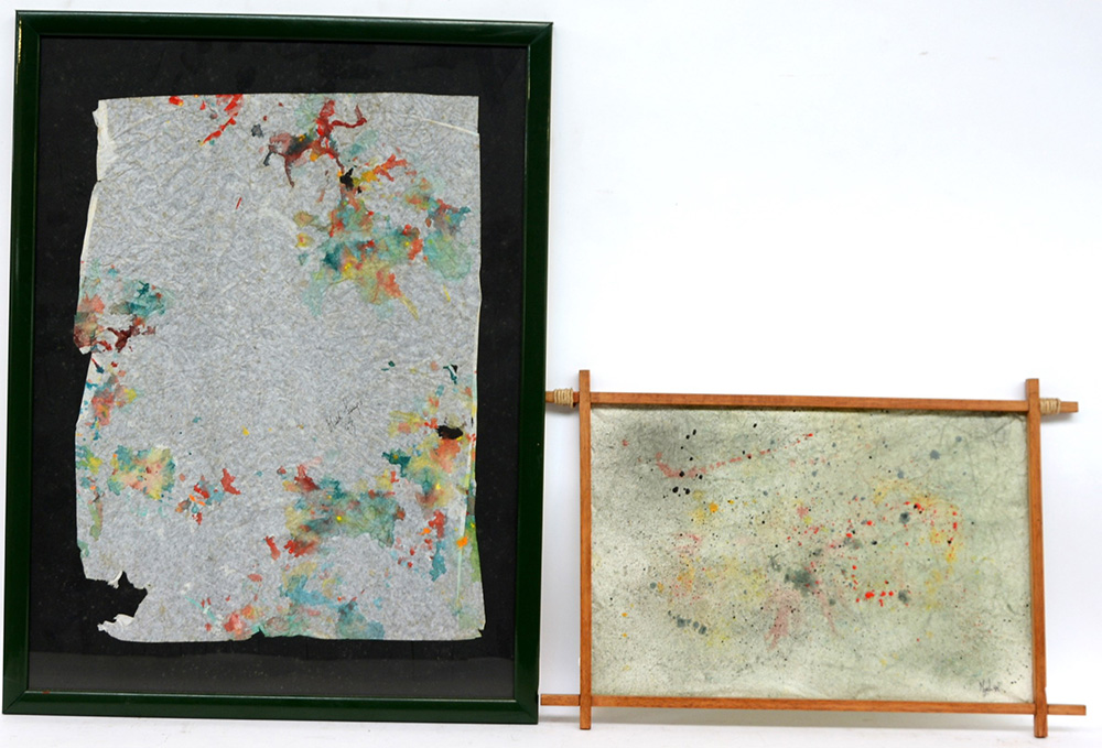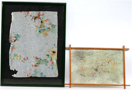 Firma indecifrata, "Composizioni", lotto di due tecniche miste su carta (cm 49x34 circa e 27x40) firmate e datate in basso a destra, in cornici (difetti)