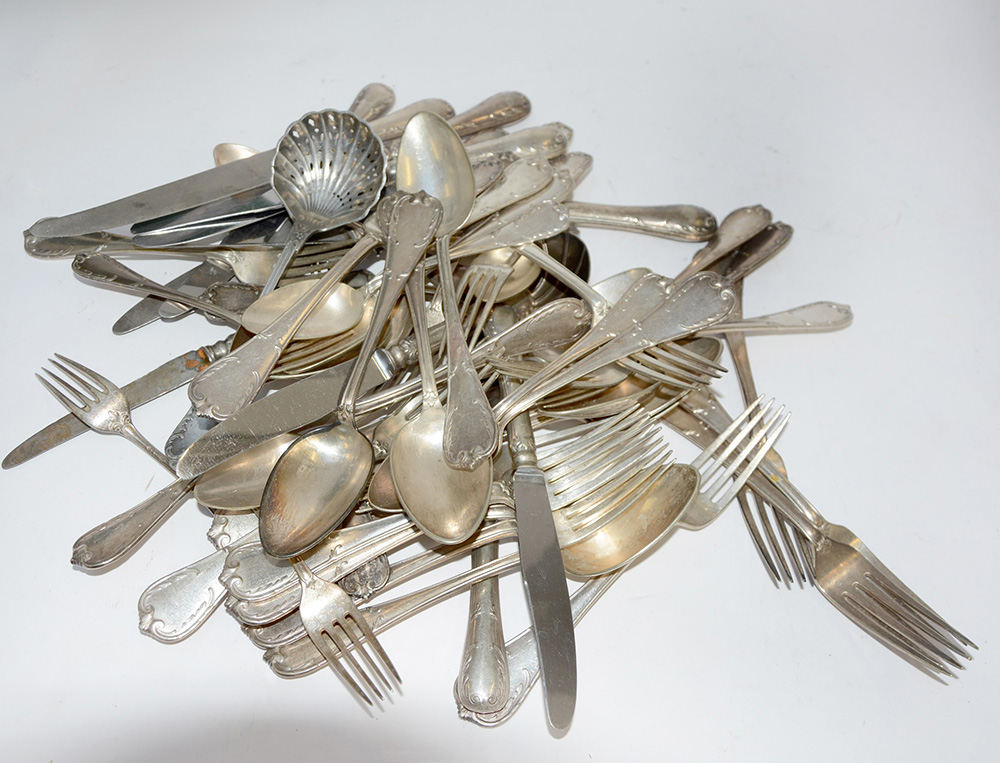 Parte di servizio di posate in metallo argentato marcate Broggi