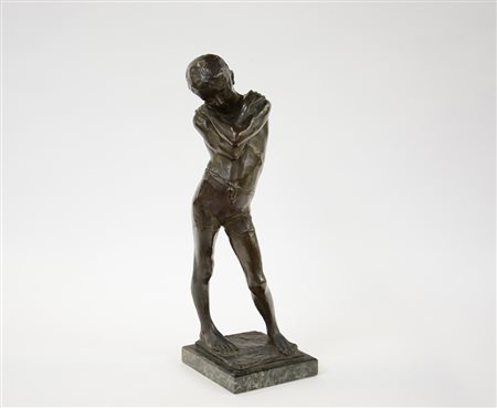 C. Abate "Fanciullo" scultura in bronzo (h cm 52) firmata alla base