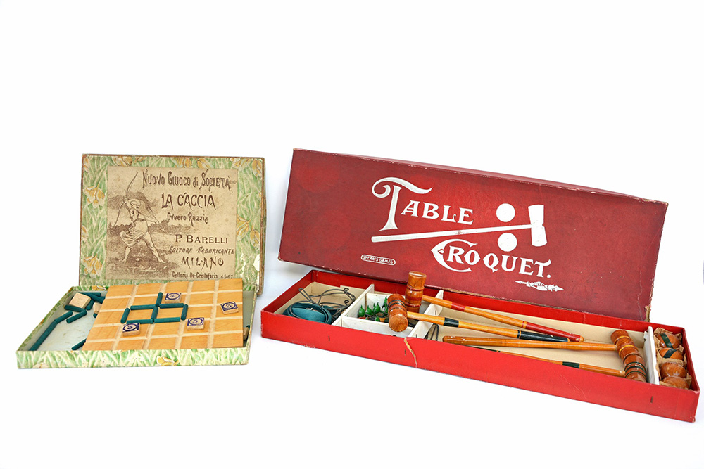 Lotto di due giochi: "Table croquet " - Spear's games, Bavaria e "La caccia ovvero razzia" P. Barelli, Milano, in custodia, inizio secolo XX (difetti)