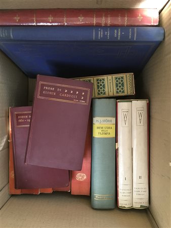 Lotto composto da quattro cartoni contenenti numerosi volumi relativi alla letteratura e alla geografia.