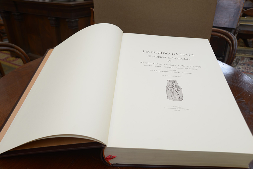 [DA VINCI, Leonardo]. Quaderni di anatomia. Roma: Edizioni d'Arte Art Market, 1980. Due volumi in folio. Legatura in piena pelle e fregi dorati ai dorsi e ai piatti, con cofanetti contenitivi rifiniti in pelle.
