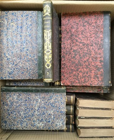 Lotto composto da svariati volumi inerenti il diritto civile, commerciale e amministrativo, editi principalmente nei secoli XIX e XX (difetti). In due cartoni.