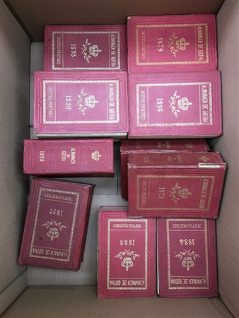 Lotto composto da alcuni volumi dell'Almanach de Gotha, editi nel secolo XIX e con legatura originale (lievi difetti). In cartone.