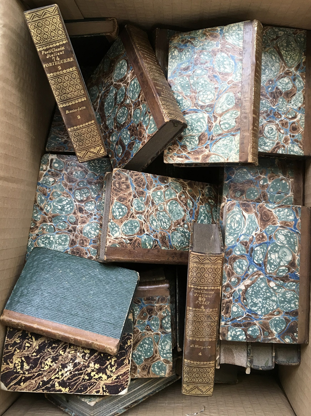 Lotto composto da numerosi volumi antichi di diverso argomento ed epoca (difetti). In tre cartoni.