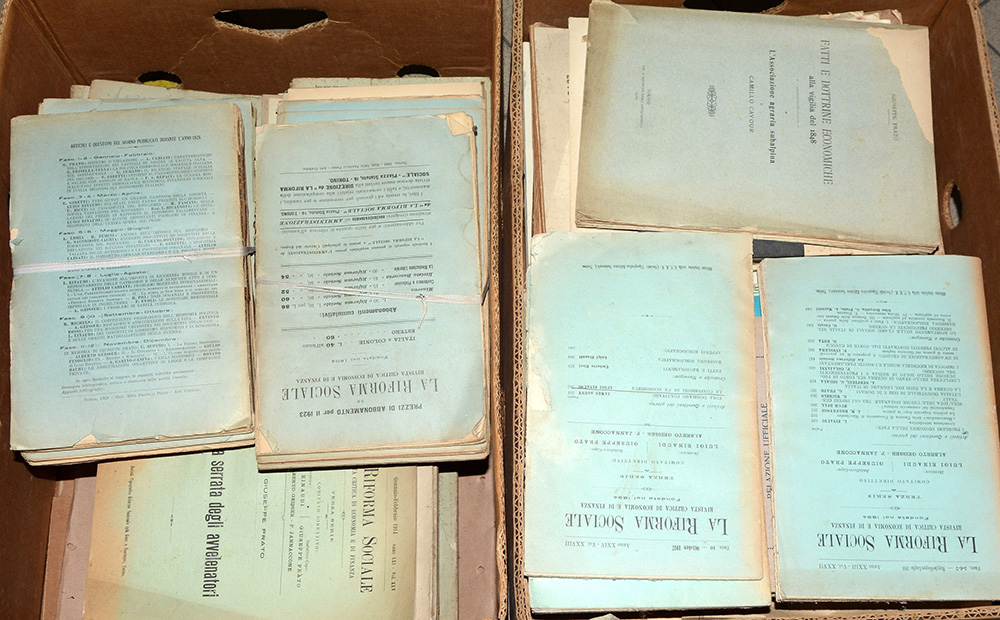 Lotto composto da svariate pubblicazioni d'argomento economico-sociale (lievi difetti). In due cartoni.
