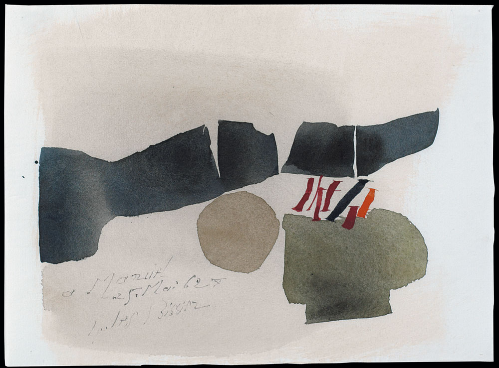 JULIUS BISSIER Friburgo 1893 - Ascona 1965 - 25. MAI 62 X a Manuel, 1962, acquerello su carta ingres bianca cm. 17,8x24,3; firma, dedica e anno in basso a sinistra, dichiarazione d'autenticità con timbro a secco della Galleria Lorenzelli (MI) su foto, esposto e pubblicato sul catalogo della mostra "Bissier, Il linguaggio della vita" tenutasi presso la Galleria Lorenzelli dal 21 settembre al 10 novembre 2007, pagina 96, tavola 41.