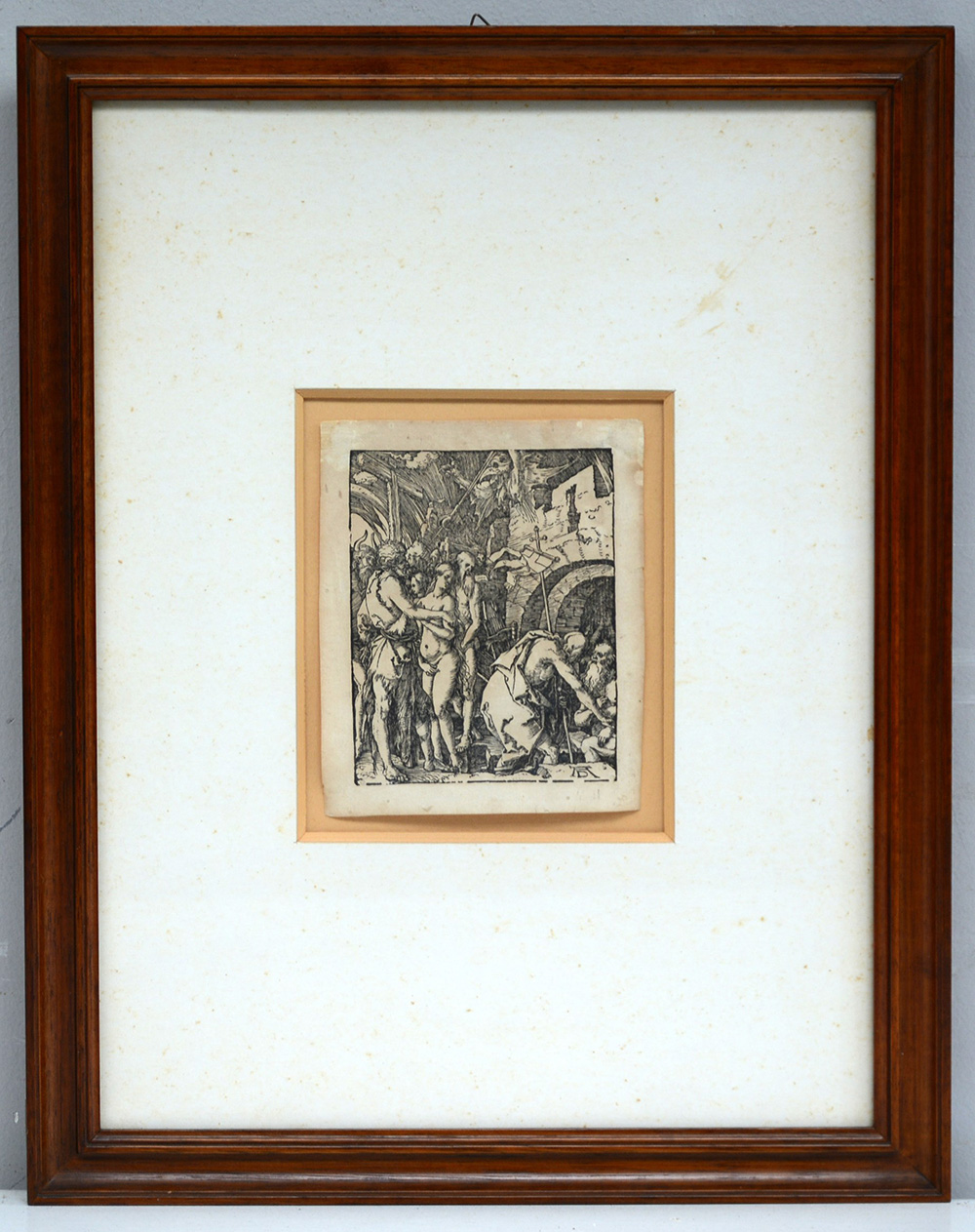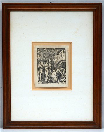 Durer Albrecht (Norimberga 1471 - 1528) "La discesa nel limbo dalla piccola passione" xilografia (cm 14x11,5) in cornice, allegata expertise