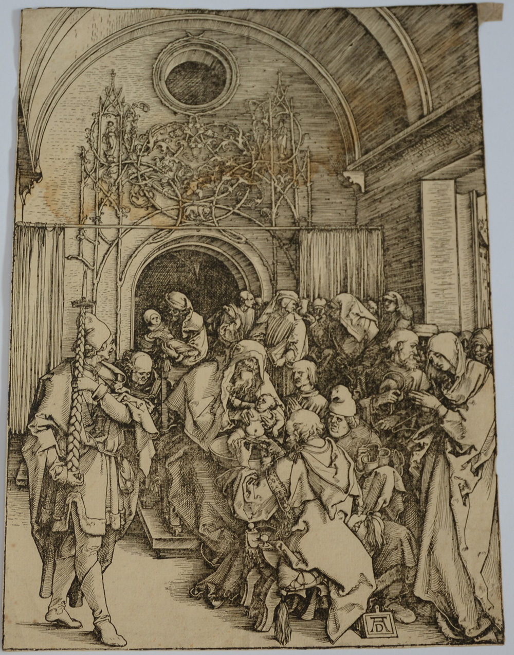 DURER, Albrecht. "La circoncisione", incisione (296 x 210mm) su carta vergellata rifilata ai margini. Tiratura posteriore (gora d'acqua nella parte superiore).