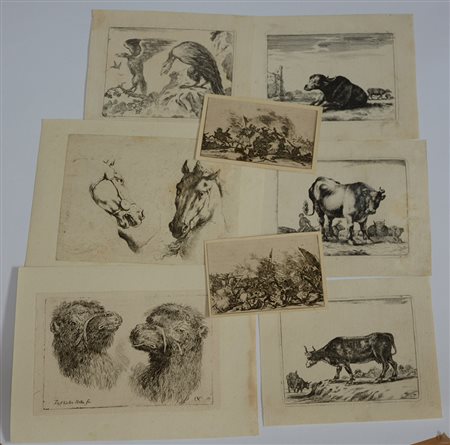 Gruppo di numerose incisioni di piccolo formato, raffiguranti principalmente animali, dimensioni differenti (difetti).