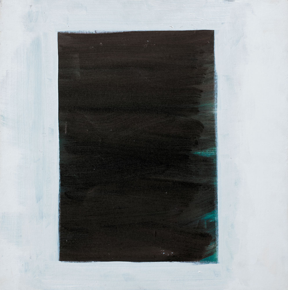 MARIO NIGRO Pistoia 28/06/1917 - 1992 - Ritratto a un rettangolo blu-rosso-verde-nero, (1989), olio e acrilico su tela applicata su tavola cm. 50x50, firma, titolo ed etichette della Galleria Arte Struktura (MI) al retro.