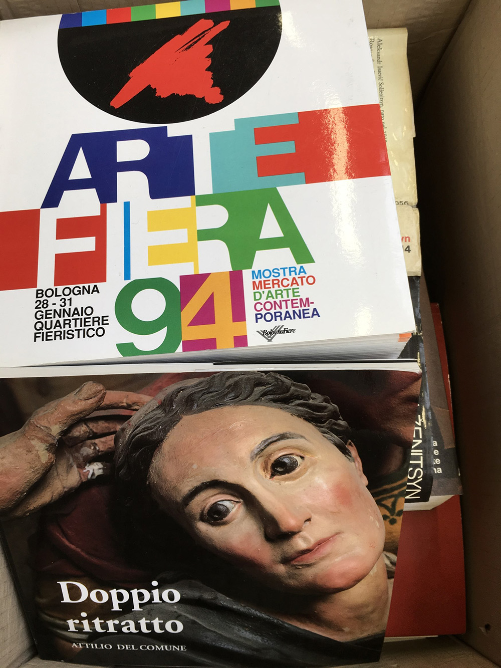 Lotto composto da svariate opere di storia dell'arte, cataloghi e monografie, fra cui alcune sul disegno italiano e altre sull'opera di Guareschi. In 5 cartoni.