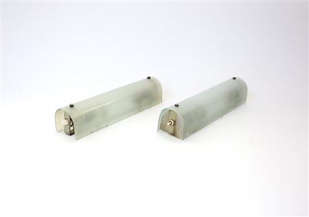 Coppia di lampade da parete in vetro stampato e metallo. Italia, anni 40 (l...