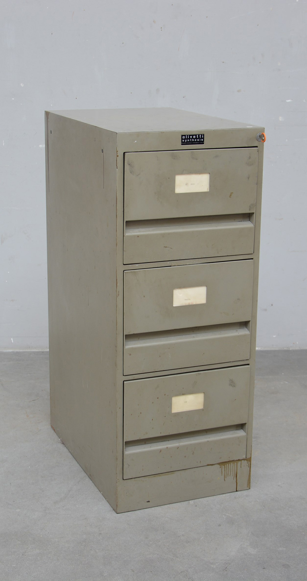 Mobile da ufficio Olivetti synthesis in metallo laccato grigio. Anni 60 (cm 42x105,5x65) (difetti)