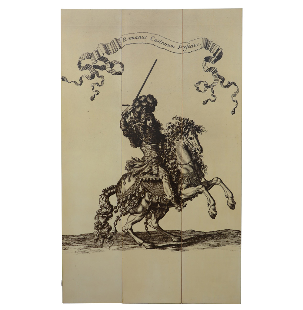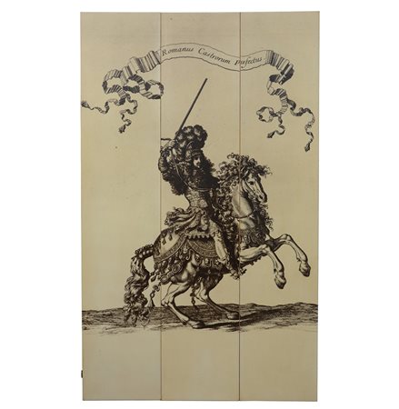 Tre ante d'armadio decorate con cavaliere a cavallo. Italia, anni 50 (difetti)