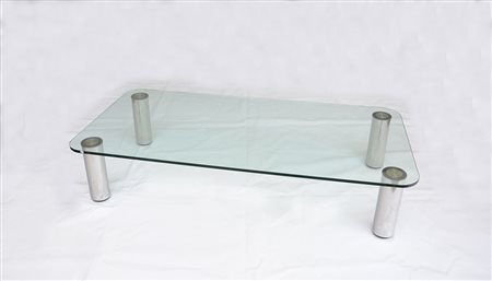 Marco Zanuso (Milano 1916 - Milano 2001) Tavolo da salotto modello "Marcuso". Produzione Zanotta, 1971. Piano in cristallo molato, quattro gambe in tubo di acciaio cromato (cm 159,5x32x80) (lievi difetti)
