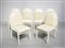 Lotto composto da sei sedie in metallo laccato e pelle color crème. Italia,...