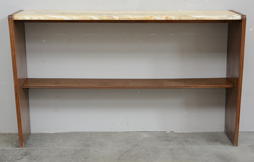 Console in legno con montanti scanalati, piano in marmo venato. Italia, anni 40 (cm 160x98x40)(difetti)