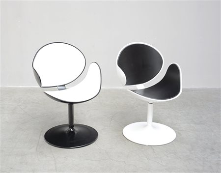 Marcello Ziliani (Brescia 1963) Coppia di poltroncine girevoli modello "Bubble" in bianco e nero. Produzione Sintesi, Italia, 2007 (cm 62x81x60) (lievi difetti)