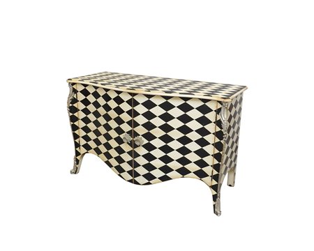 Mobile in stile Luigi XV a due ante laccato a losanghe romboidali bianche e nere. Produzione Moissonnier, sec XX (cm 139x86x85) (difetti)