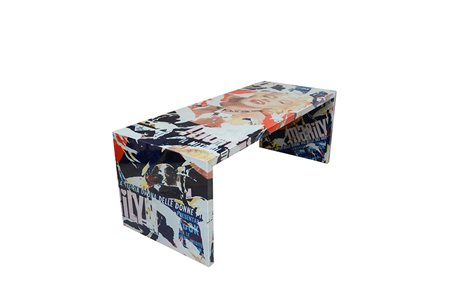 Tavolo "Marilyn, la donna più bella" della serie "Decollage Collection", con serigrafia da opera di Mimmo Rotella. Metallo stampato e zincato. Produzione Zerodisegno, Italia, 2006 (cm 200x73x80) (lievi difetti)