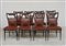 Osvaldo Borsani (attr.) Lotto composto da otto sedie in legno di noce tinto con schienale e seduta rivestita in skai marrone. Varedo, anni 50 (cm 48x98x42) (difetti)