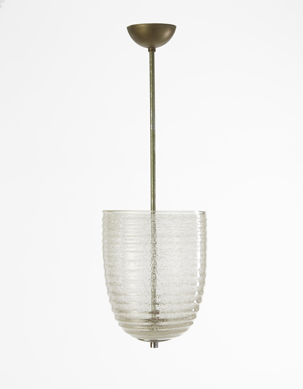 Manifattura di Murano Lampada a sospensione in vetro cristallo pulegoso, struttura in metallo nichelato. Anni 30 (h cm 70) Provenienza: collezione privata, Milano -EN Murano Manufacture Ceiling lamp. Glass and metal. 1930S (h cm 70) Provenance: Private collection, Milan