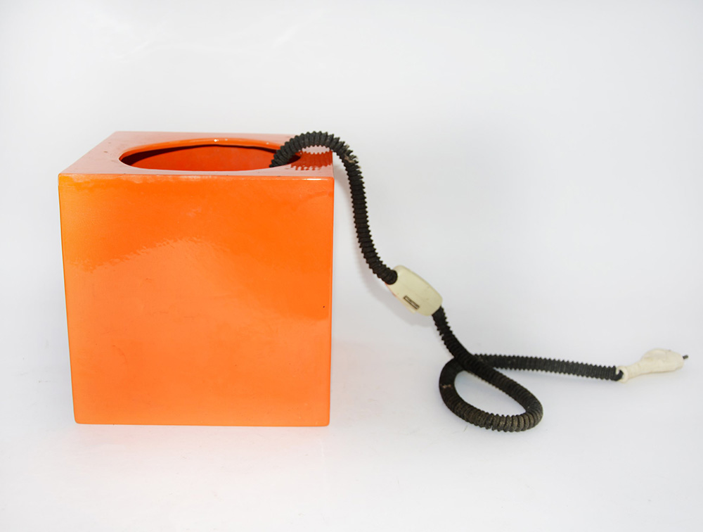 Lampada da tavolo di forma cubica in ceramica arancione. Italia, anni 70 (cm 20x20x20) (lievi difetti)