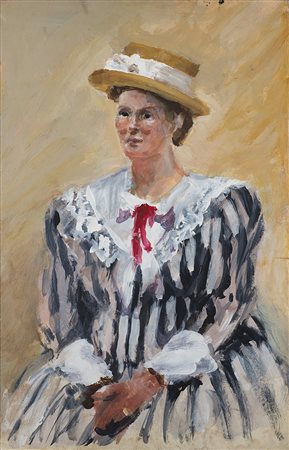 Scuola dell'inizio del sec. XX "Ritratto di donna con cappello di paglia"...