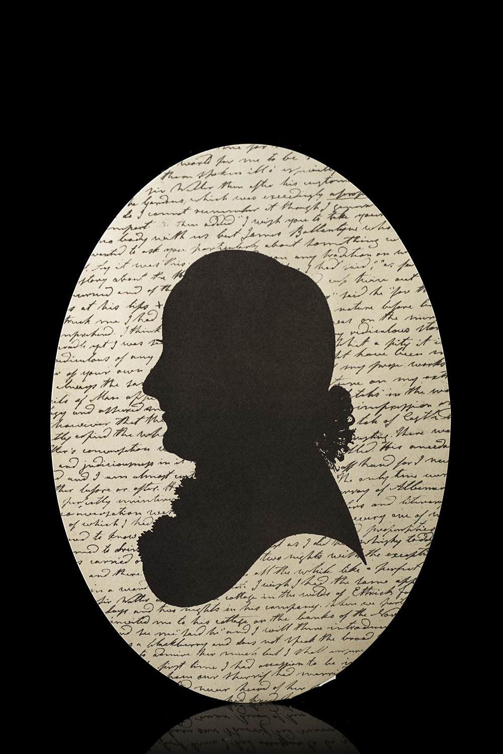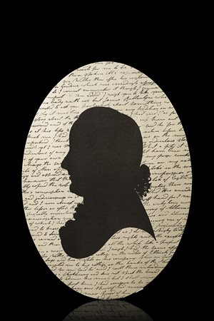 Silhouette su carta ovale (cm 16,5x11) In cornice in legno ebanizzato
