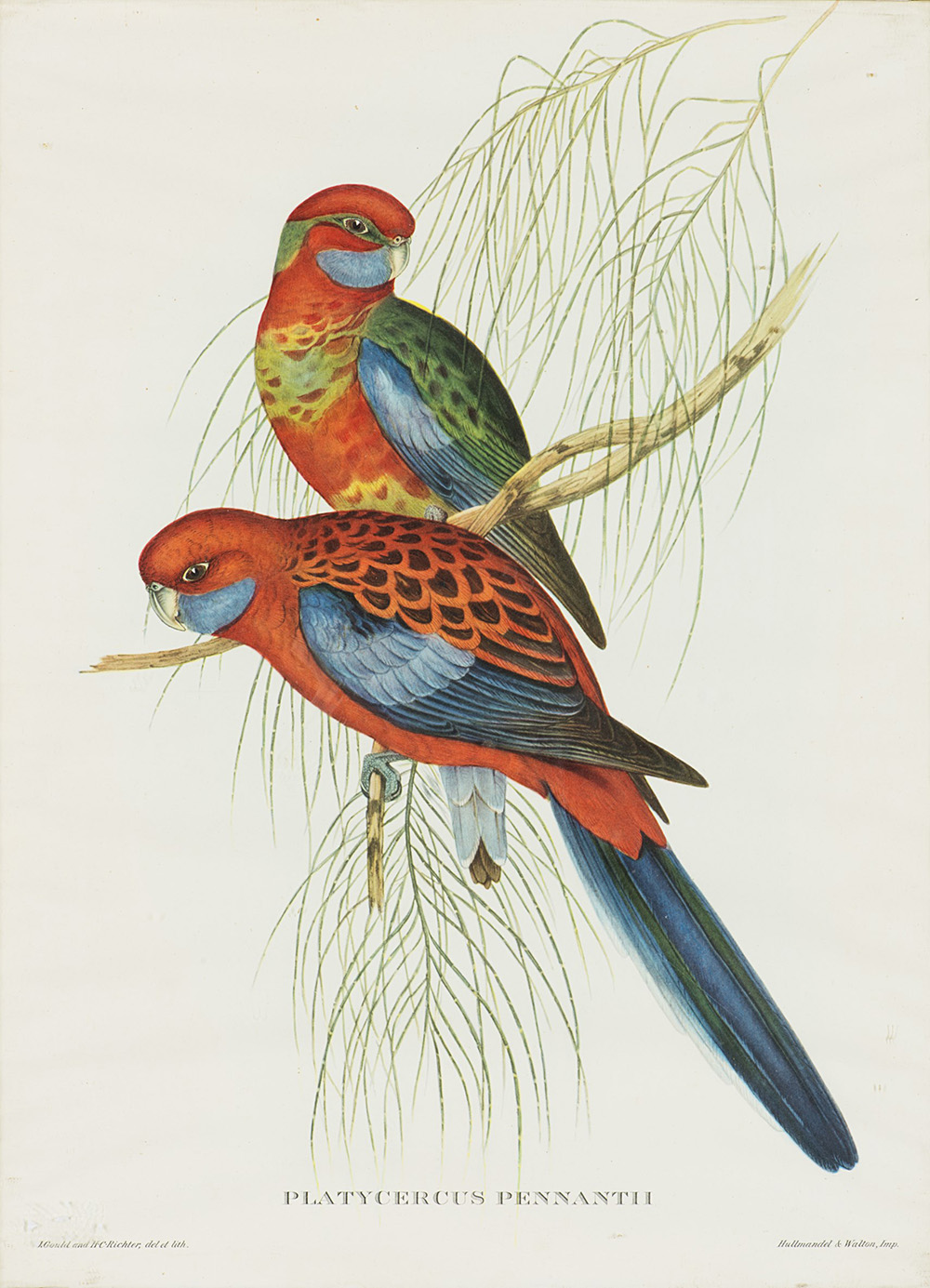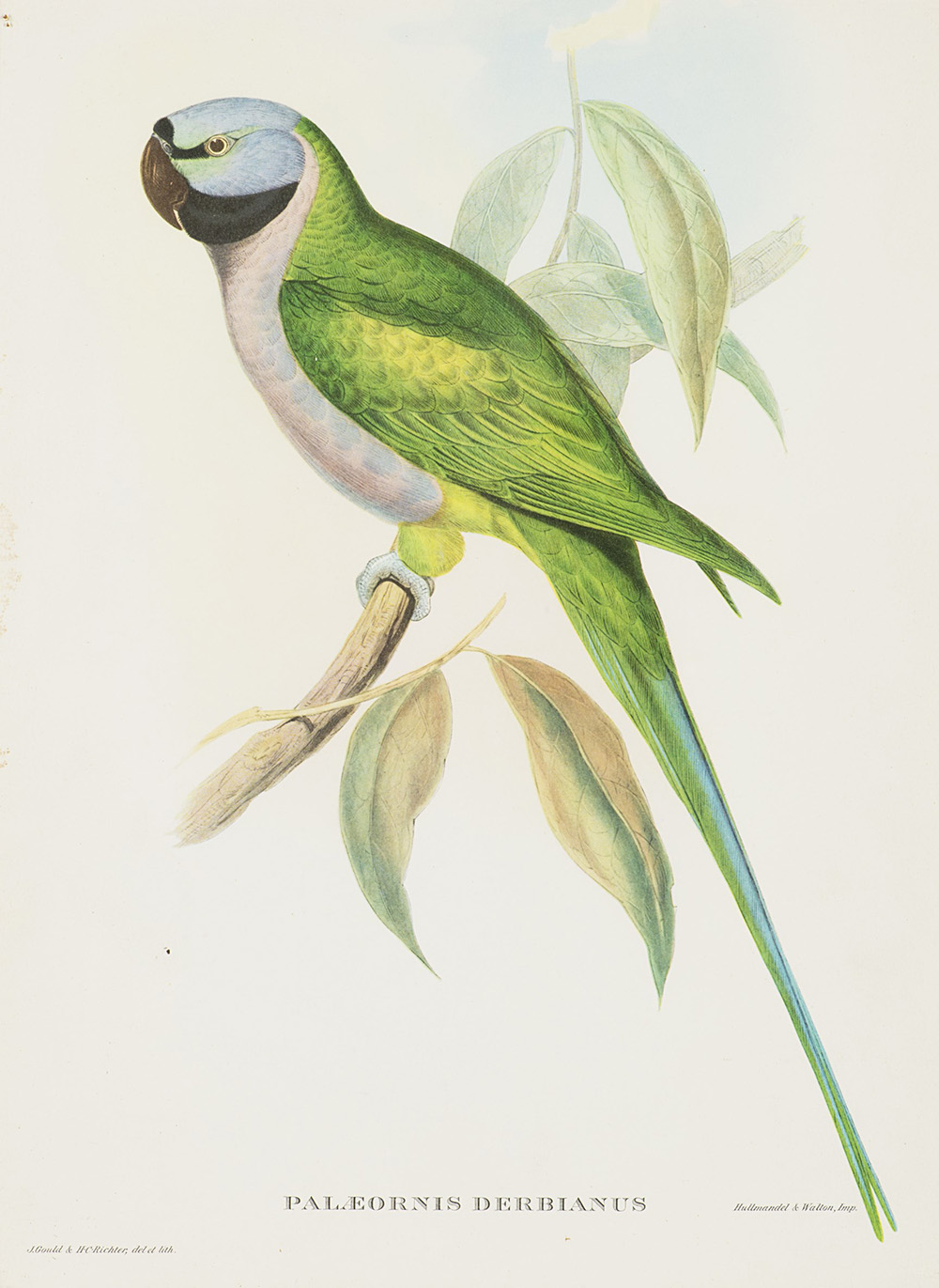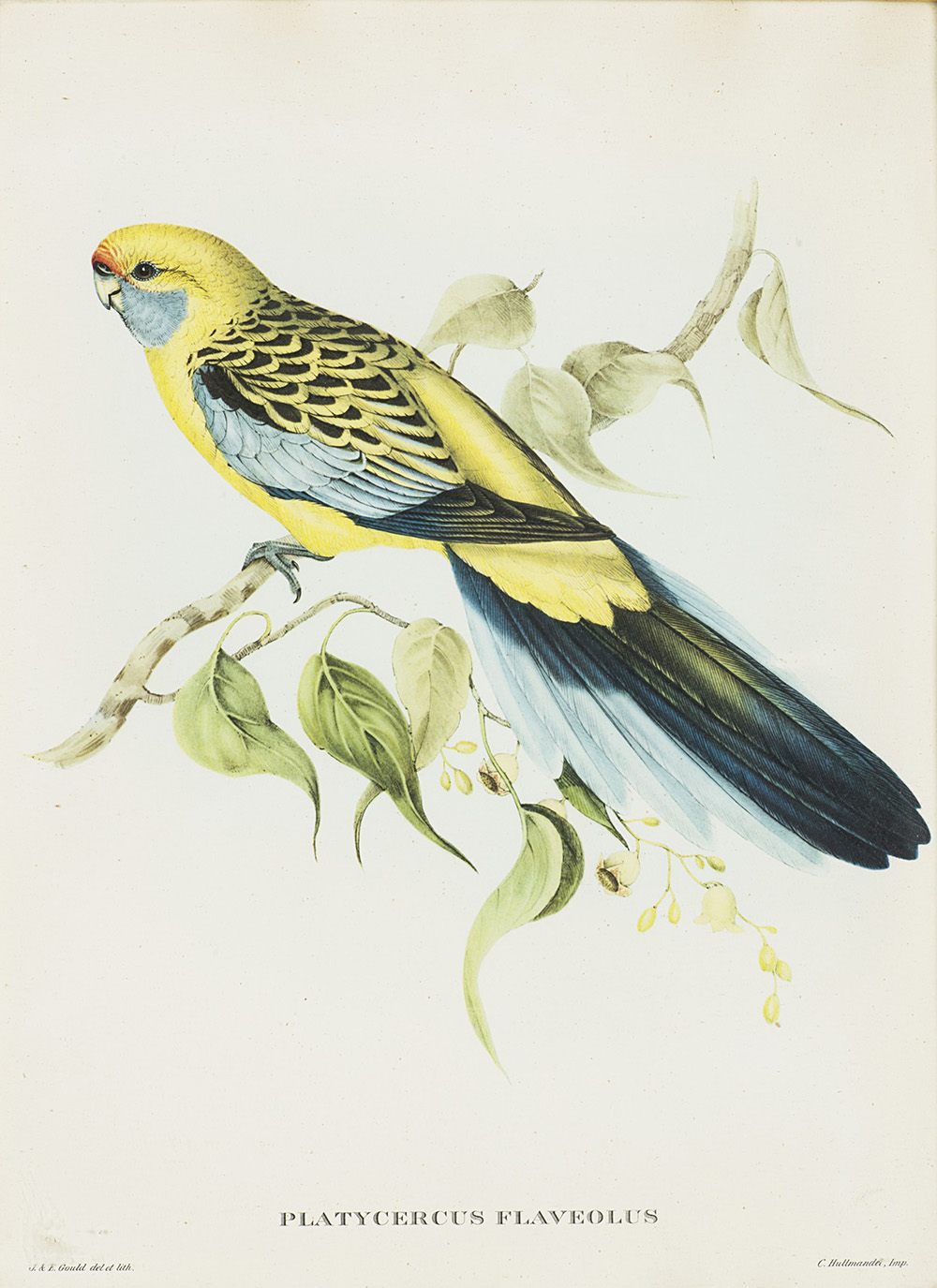 Serie di nove riproduzioni di stampe di Gould con volatili e un dipinto olio...
