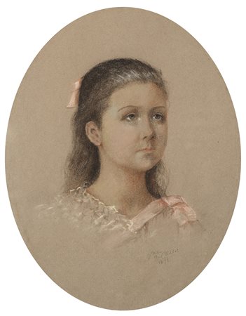 Firma indecifrata "Ritratto di fanciulla in rosa" pastello su carta (cm...