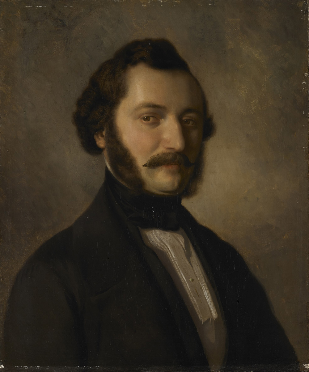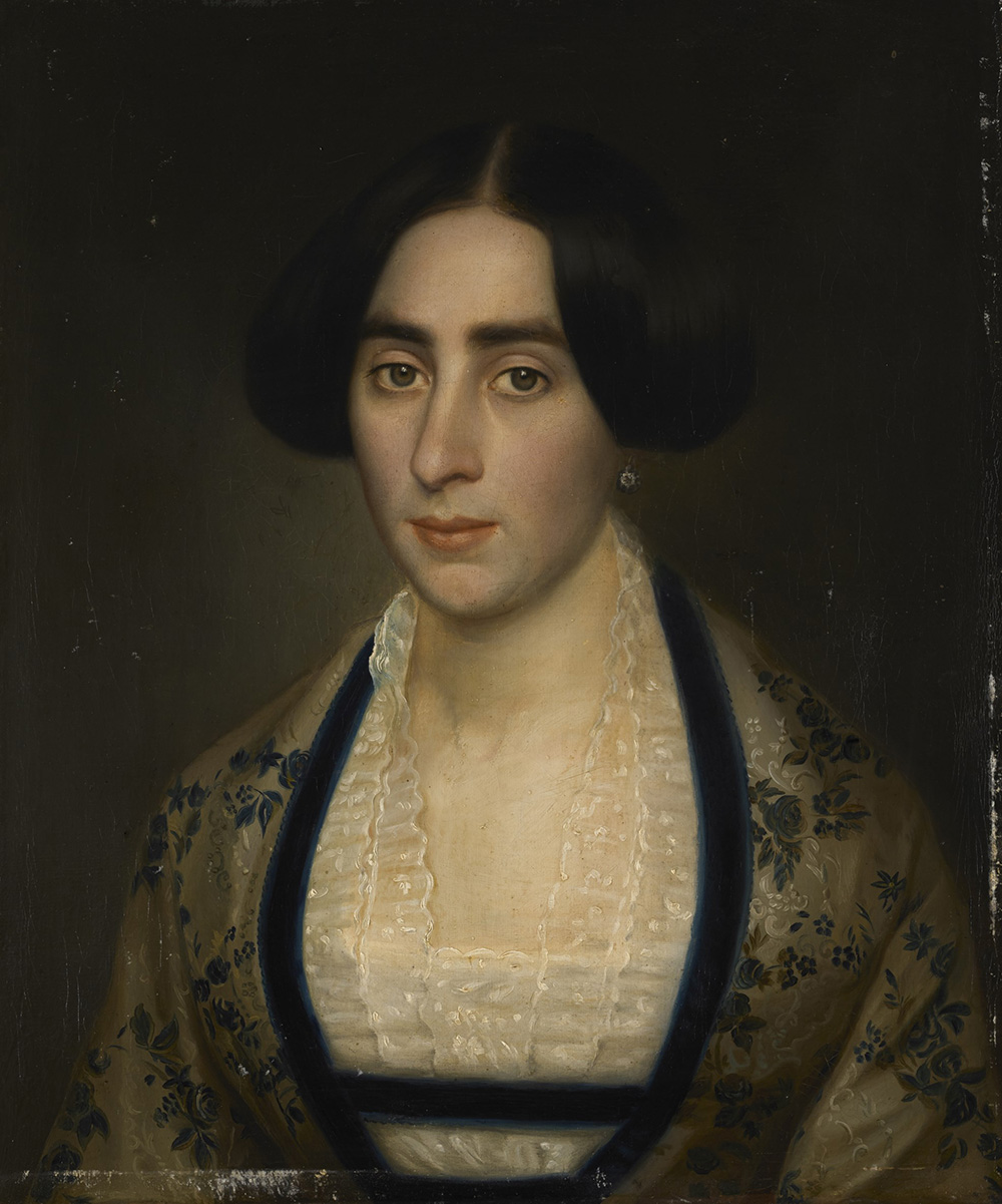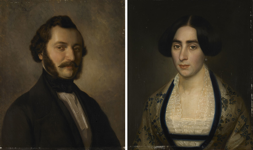 Scuola del sec. XIX "Ritratto di gentiluomo e gentildonna" coppia di olii su tela (cm 53x45) In cornici in legno e pastiglia dorata (difetti e restauri)