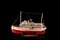 Modello giocattolo di piroscafo in legno smaltato, con basamento (l. cm 67) (difetti)