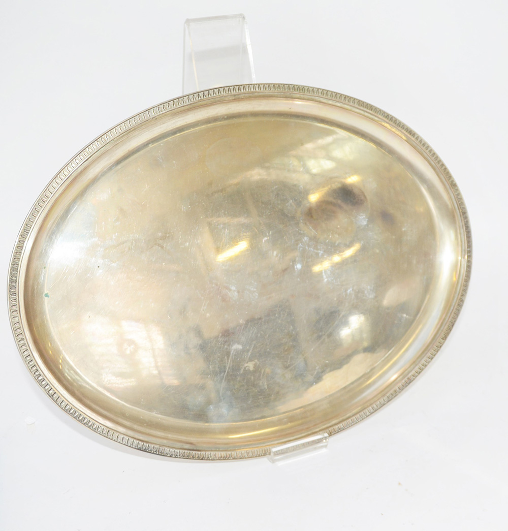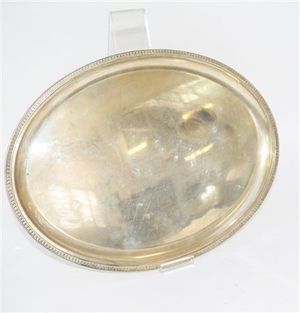 Vassoio ovale in argento con bordo decorato a palmette (difetti)