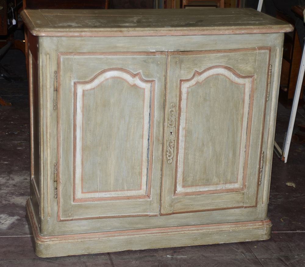 Antica credenza in legno laccato a due ante sul fronte (cm 106x96x45) (difetti)