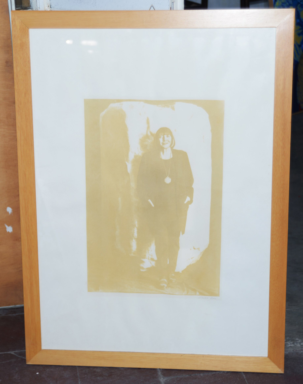 Riproduzione da una foto raffigurante Krizia firmata Carlo orsi a matita (cm 100x70) in cornice (difetti)