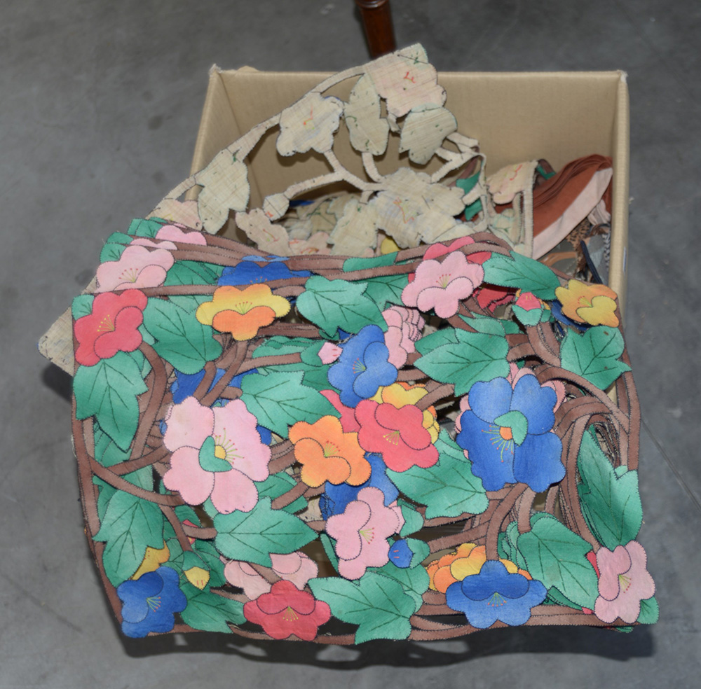Cartone contenente numerose tovagliette da colazione di manifatture diverse,...