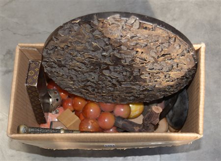 Scatola contenente numerosi oggetti di manifattura e materiali diversi